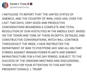 It appears that Trump is once again acting in his usual style. He is straining to present a brave face in a very poor situation and is using triumphant rhetoric to prepare an exit from a war that has turned out to be openly unsuccessful for him.